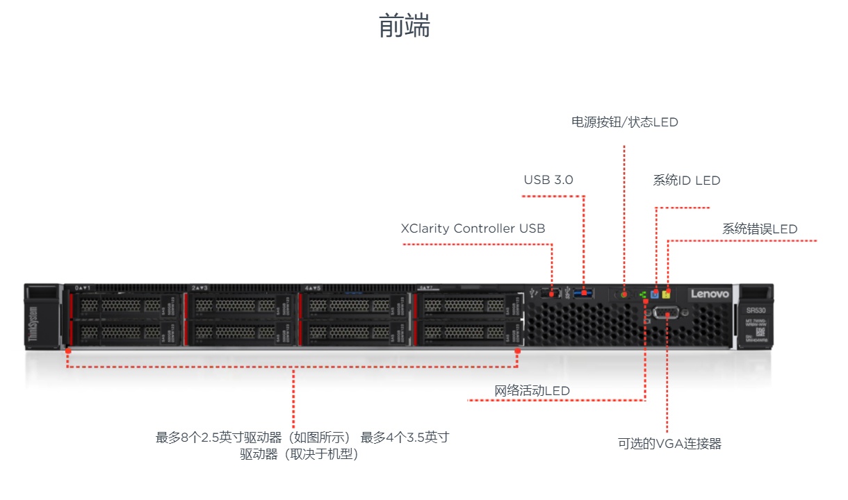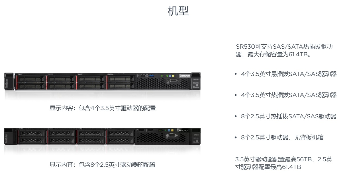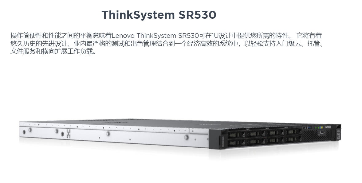LenovoThinkSystemSR530可在1U设计中提供您所需的特性。支持入门级云、托管文件服务和横向扩展工作负载。