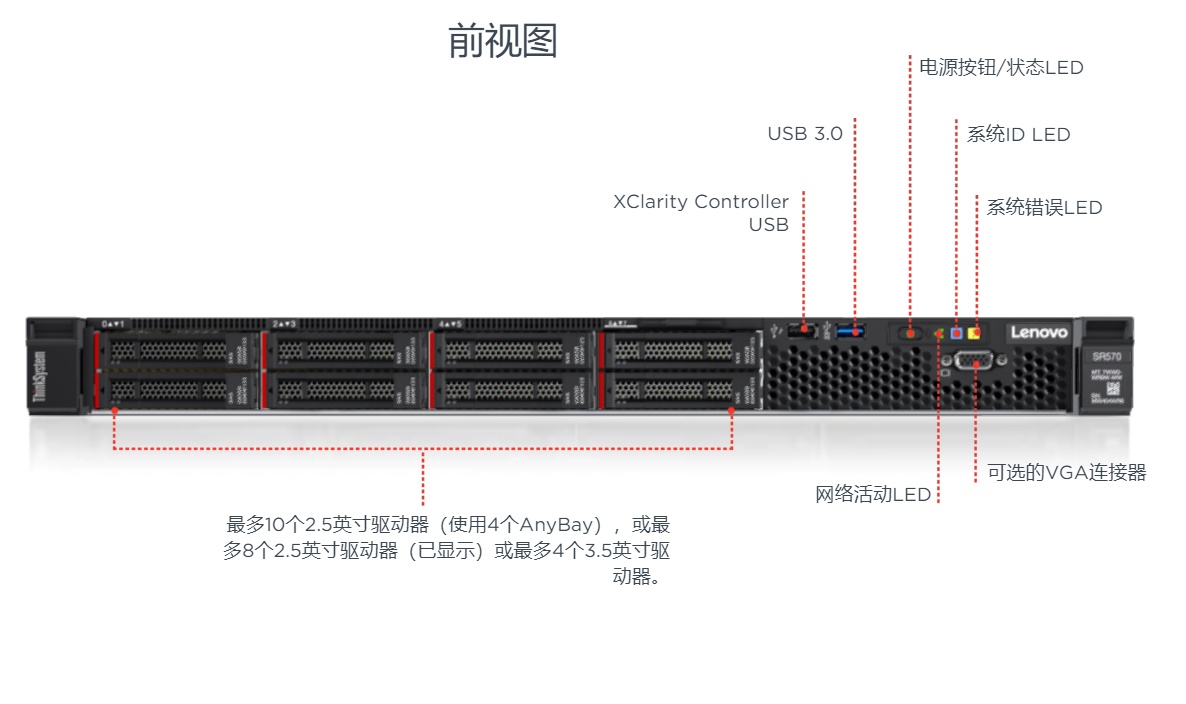 | 管理 | XClarity Administrator; XClarity Controller(嵌入式硬件); 可选 XClarity Pro |