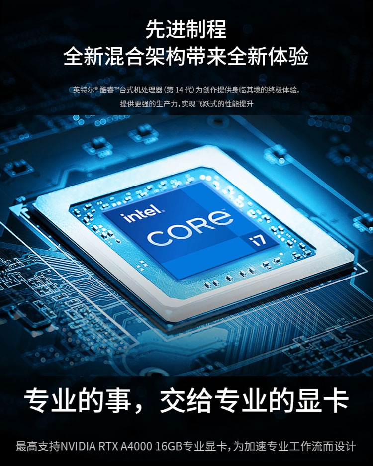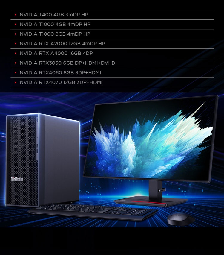 显卡‌:支持NVIDIA RTX 专业显卡与GeForce系列显卡,如NVIDIA RTX A2000、NVIDIA RTX A4000、NVIDIA RTX 3050、NVIDIA RTX 4060、NVIDIA RTX 4070等,满足不同的图形处理需求。